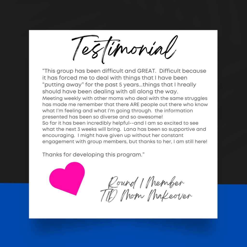 Testimonials Below are some reviews from Round 1 of The T1D Mom Makeover Share this: Share on X (Opens in new window) X Share on Facebook (Opens in new window) Facebook Like Loading...